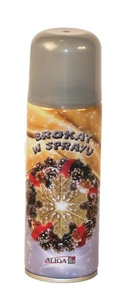 Brokat w kolorze srebrnym 250ml w sprayu. Doskonale nadaje się do zdobienia papieru, kartonu, szablonów oraz innych powierzchni wykonanych np. techniką decoupage lub do dodania blasku dekoracjom wykonanym innymi technikami.