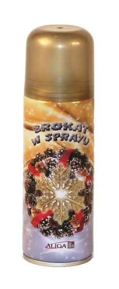 Brokat w kolorze złotym 250ml w sprayu. Doskonale nadaje się do zdobienia papieru, kartonu, szablonów oraz innych powierzchni wykonanych np. techniką decoupage lub do dodania blasku dekoracjom wykonanym innymi technikami.