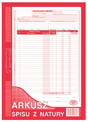 Arkusz spisu z natury A4