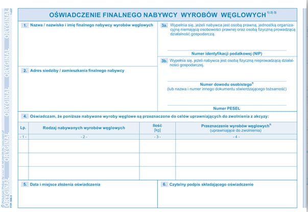 Oświadczenie finalnego nabywcy wyrobów węglowych.