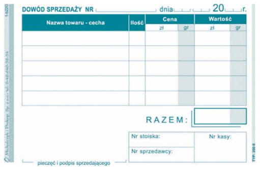 Zastosowanie: rachunki i inne dowody sprzedaży.