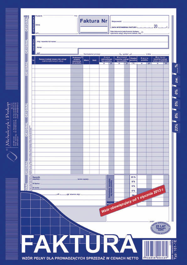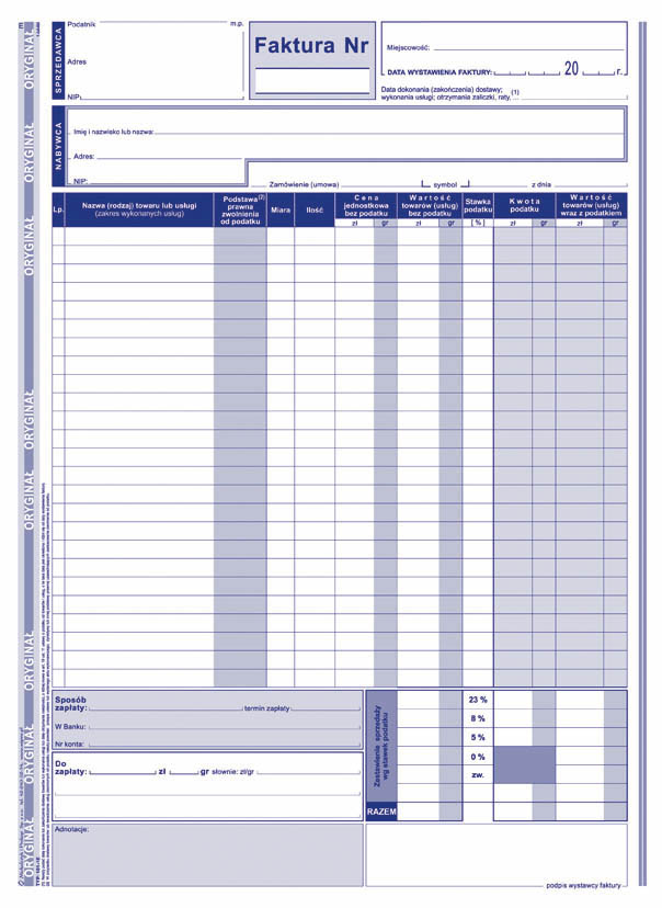 Faktura A4 oryginał-kopia. Papier samokopiujący bloczek 80 kartek.