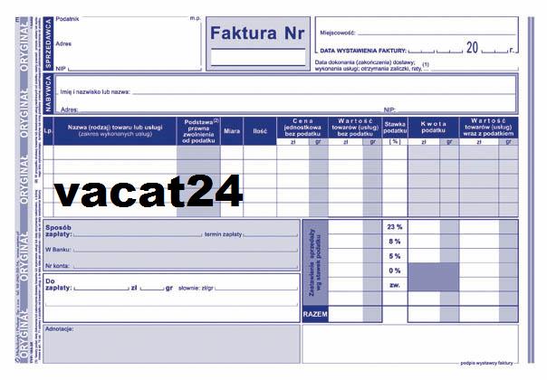 Faktura A5 oryginał-kopia. Papier samokopiujący bloczek 80 kartek.