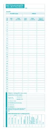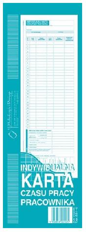 Indywidualna karta czasu pracy pracownika format 1/2 A4 bloczek 40 kartek, papier offsetowy.