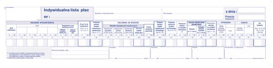 Lista płac indywidualna format 1/3 A3 bloczek 50 kartek, papier offsetowy.