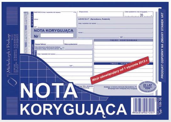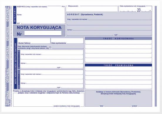 Nota korygująca format A5 samokopiujący (oryginał+kopia) bloczek 80 kartek.