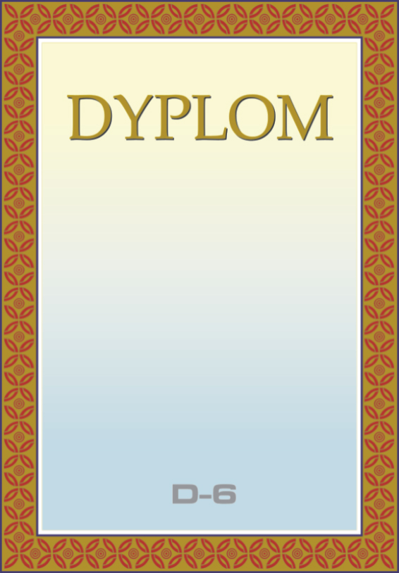 Dyplom ogólny w formacie A-4 wykonany na kartonie z fakturą płótna o gramaturze 185g. Drukowany na wysokiej klasy maszynach offsetowych, dyskretne złocenia podkreślają jakość produktu. Istnieje możliwość wykonania na dyplomie dodruku tekstu grafiki zgodnie z Państwa projektem.