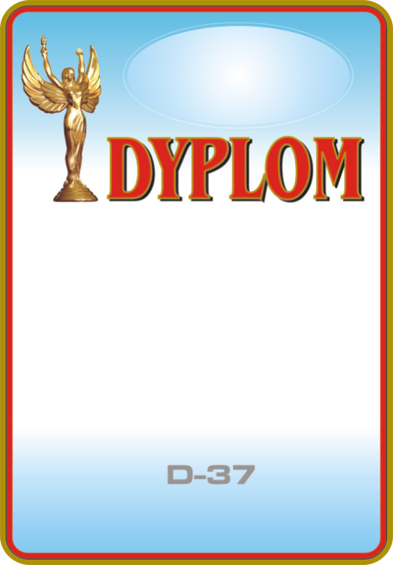 Dyplom sportowy w formacie A-4 wykonany na kartonie z fakturą płótna o gramaturze 185g. Drukowany na wysokiej klasy maszynach offsetowych, dyskretne złocenia podkreślają jakość produktu. Istnieje możliwość wykonania na dyplomie dodruku tekstu grafiki zgodnie z Państwa projektem.