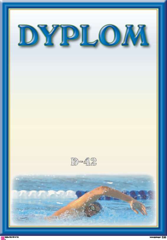 Dyplom sportowy w formacie A-4 wykonany na kartonie z fakturą płótna o gramaturze 185g. Drukowany na wysokiej klasy maszynach offsetowych, dyskretne złocenia podkreślają jakość produktu. Istnieje możliwość wykonania na dyplomie dodruku tekstu grafiki zgodnie z Państwa projektem.