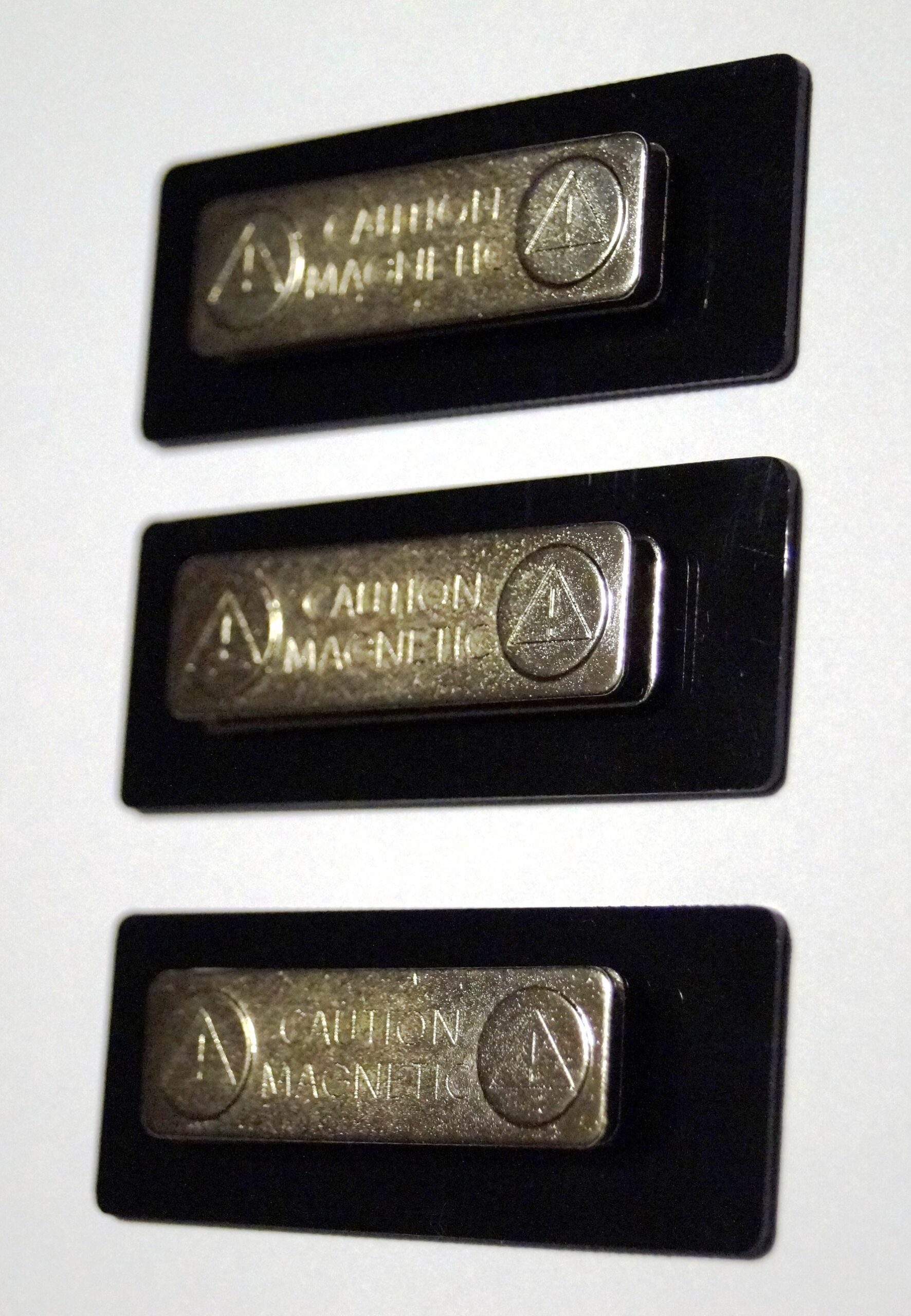 Wykonany z laminatu w kolorze szczotkowanego srebra. Zastosowana przypinka magnetyczna nie niszczy odzieży do której przypinamy identyfikator. Wymiary 70mm x 30mm wystarczą aby na identyfikatorze umieścić logo oraz informacje personalne. Po wcześniejszym kontakcie istnieje możliwość wykonania identyfikatora w kolorze szczotkowanego złota oraz w kilku podstawowych kolorach.