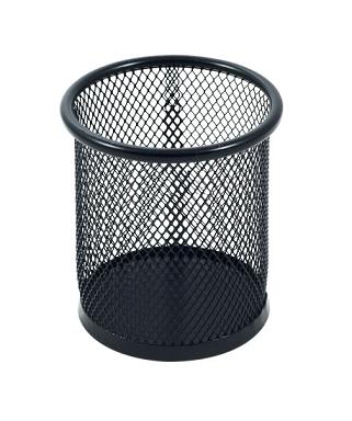 Wykonany z lakierowanego na czarno metalu pojemnik na długopisy. Ciekawe wzornictwo, wysoka jakość wykonania oraz trwałość sprawią, że Państwa biurko nabierze niepowtarzalnego wyglądu na wiele lat. Wymiary: wysokość 10cm, średnica 8cm.