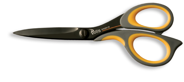 Nożyczki wykonane ze stali nierdzewnej, posiadają wygodny w użyciu idealnie dopasowany do kształtu dłoni uchwyt pokryty wysokiej jakości miękkim tworzywem w kolorze żółtym.