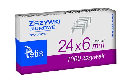 Zszywki TETIS wykonane z wysokiej jakości stali nierdzewnej. Charakteryzują się dużą twardością i odpornością na rozciąganie. Obustronnie zaostrzone końce zapobiegają zginaniu i łatwo przebijają zszywany plik. Stosowane w tradycyjnych zszywaczach.