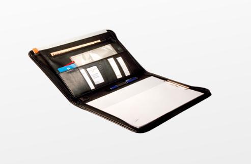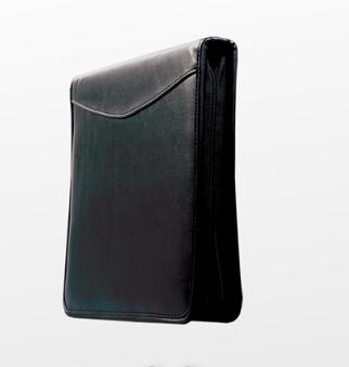Popularna teczka aktowa zapinana na suwak, wewnątrz miejsce na długopis, kieszonki na wizytówki, dwie kieszenie wewnętrzne na dokumenty, w tym jedna zapinana na suwak, klips do podtrzymywania notesu. Kolor czarny.
