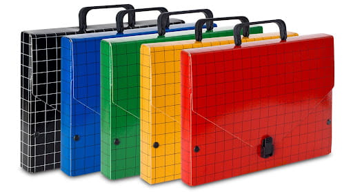Oryginalna teczka VauPe wykonana z wielobarwnej, dwustronnie powlekanej polipropylenem tektury. Wyposażona w ręczkę i zamek z tworzywa. Format A4, szerokość 40 mm.