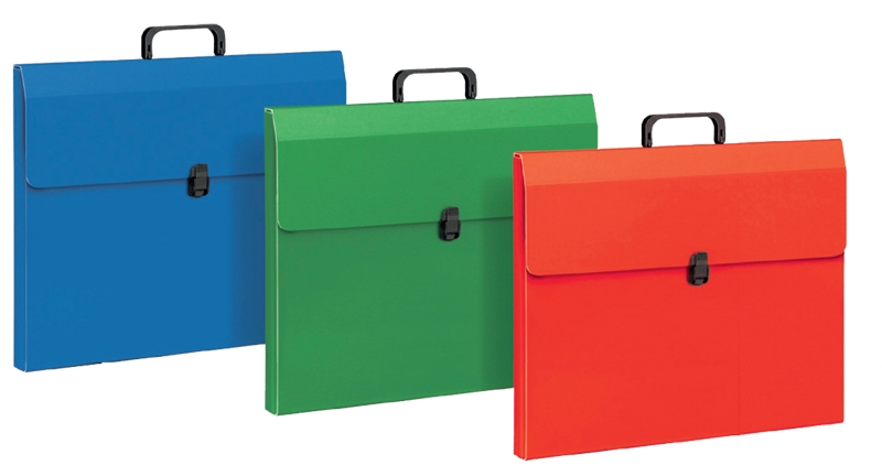 Wykonana z tektury o grubości 1mm dwustronnie barwionej powlekanej polipropylenem. Posiada zamek i rączkę z tworzywa. Szerokość grzbietu 30mm. Dostępna w formacie B-3. Jedyna na rynku tego typu. Wymiary 50x35cm.