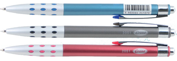 Długopis automatyczny z niebieskim wkładem, obudowa wykonana z wytrzymałego i estetycznego tworzywa sztucznego. Długość linii pisania 1000 m, grubość 0,7 mm.