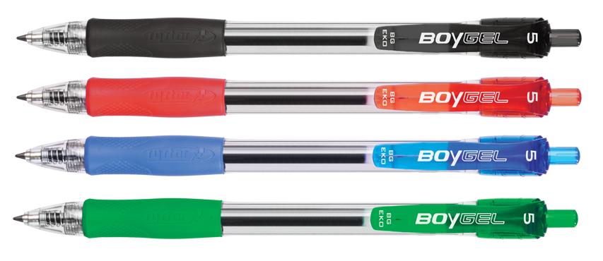 Automatyczne pióro żelowe z przezroczystym korpusem, gumowym uchwytem i wymiennym wkładem R-120. Grubość linii pisania: 0,3 mm. Długość linii pisania: 900 m. Dostępne w czterech podstawowych kolorach: czarnym, czerwonym, niebieskim i zielonym.