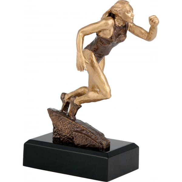 Figurka o wysokości 19,5cm wykonana z odlewu na drewnianym postumencie. Idealnie nadaje się na prezent lub nagrodę dla sportowca, biegaczki, maratończyka.