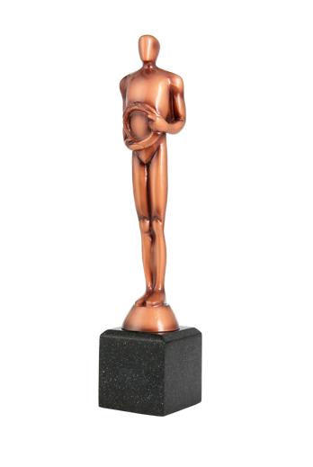 Figurka o wysokości 33,5 cm wykonana z odlewu na drewnianej podstawie. Idealnie nadaje się na prezent lub nagrodę. W cenę wliczona jest grawerowana tabliczka w kolorze złotym lub srebrnym z Państwa indywidualnym tekstem, dedykacją. Po zakupie prosimy wysłać e-mailem tekst do grawerowania.
