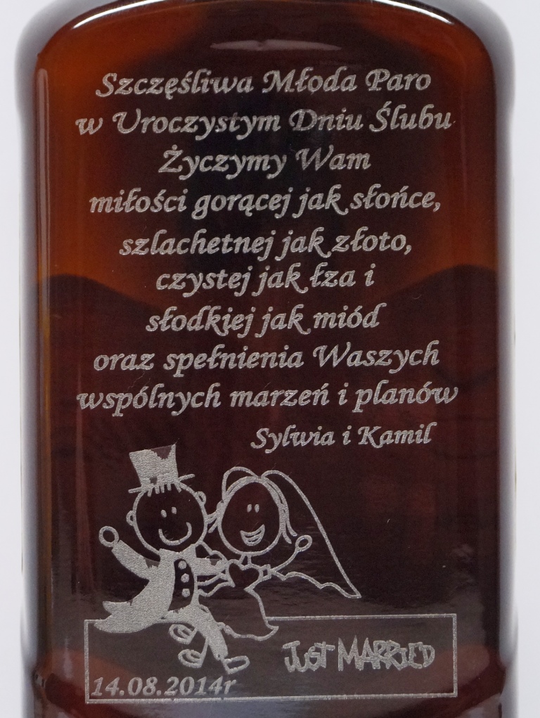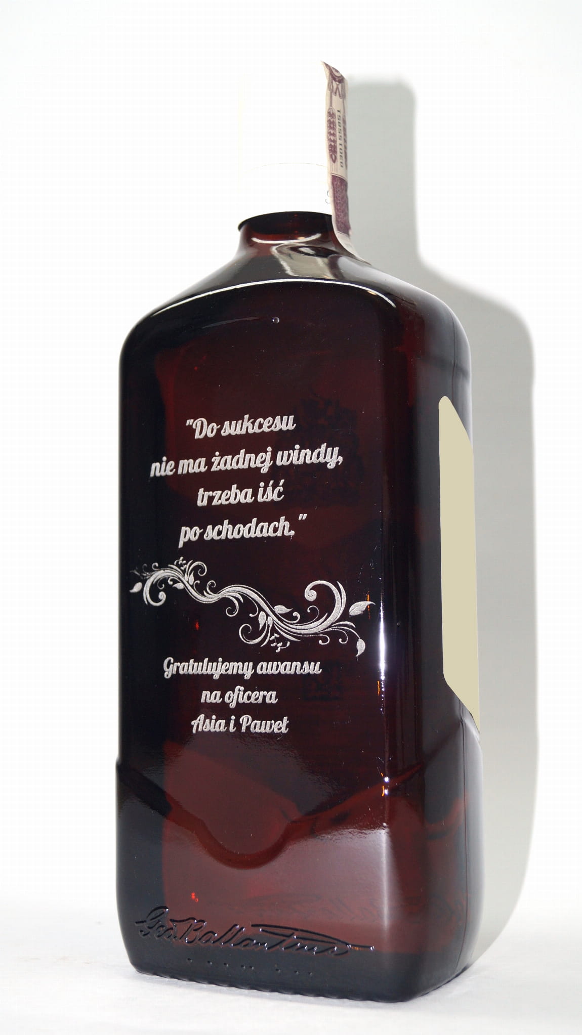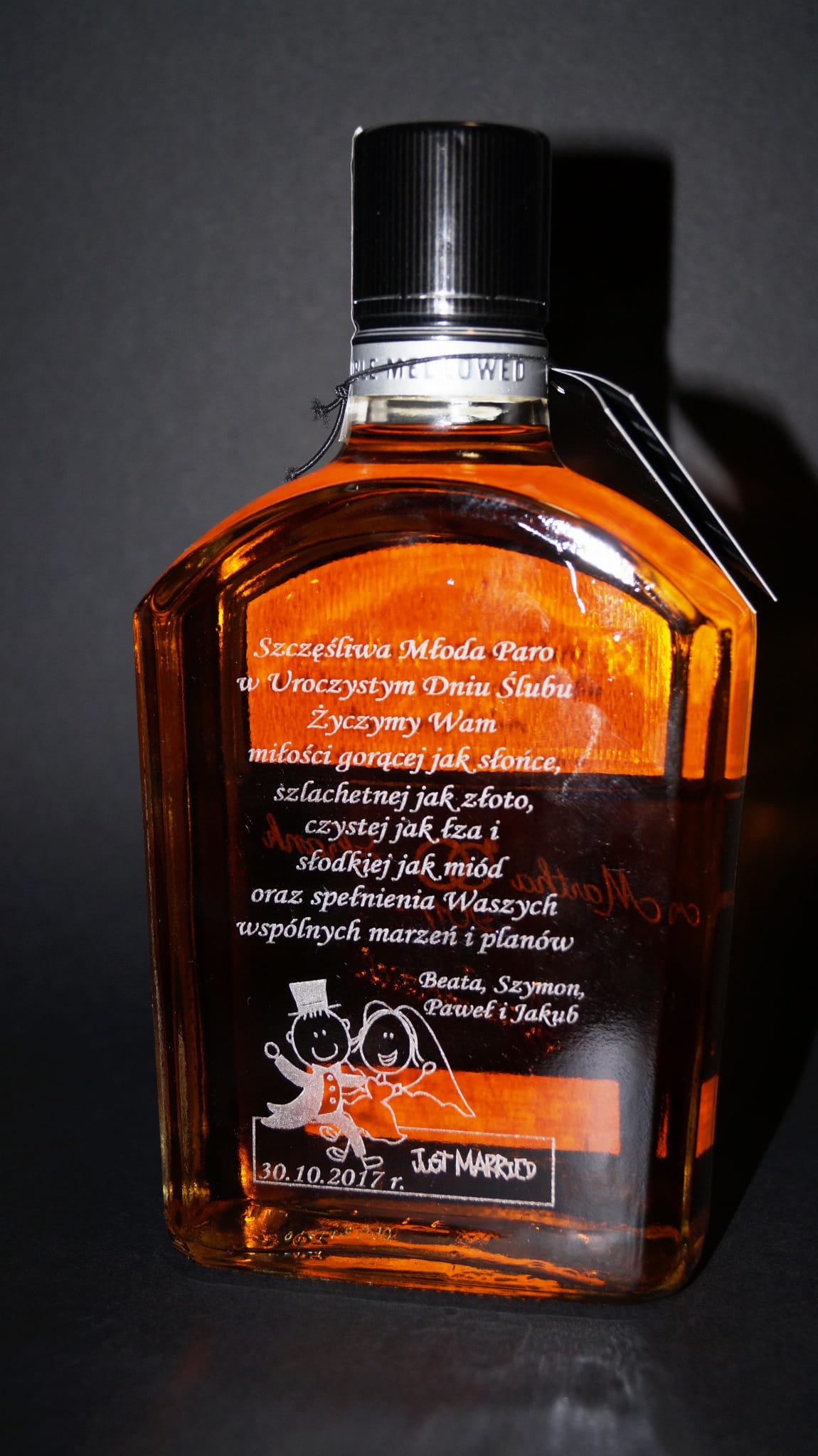 Grawerujemy dowolny tekst lub grafikę na płaskich butelkach z alkoholem oraz na płaskich przedmiotach wykonanych ze szkła.