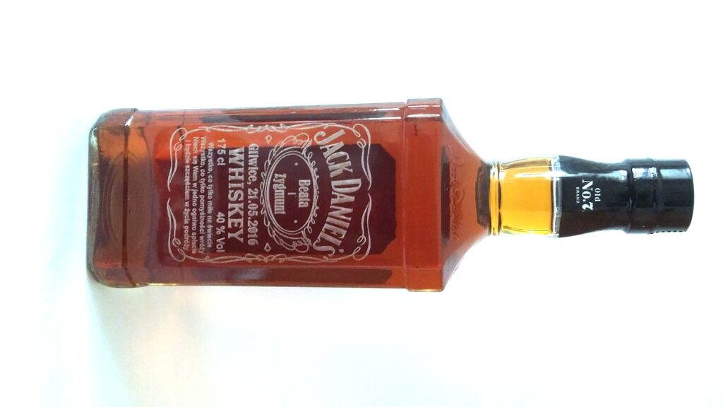 Grawerujemy dowolny tekst lub grafikę na płaskich butelkach z alkoholem oraz na płaskich przedmiotach wykonanych ze szkła.
