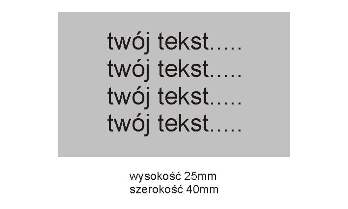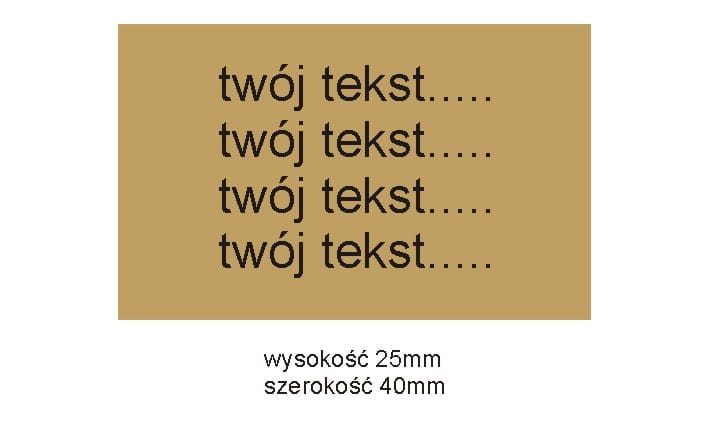 Tabliczka grawerowana 25x40mm wykonana ze złotego lub srebrnego, szczotkowanego laminatu grawerskiego o grubości 0,8mm. Podklejona taśmą dwustronną. Tekst do grawerowania prosimy wpisać w uwagach do zamówienia lub w osobnym e-mailu.