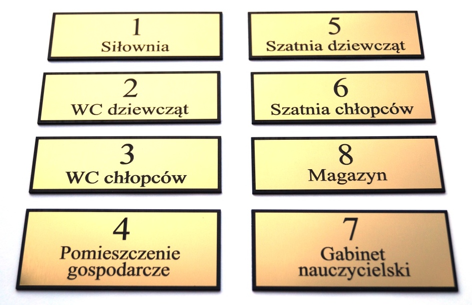 Wykonujemy grawerowane laserowo tabliczki opisowe na trofea, puchary, pamiątki, tabliczki znamionowe, tabliczki, wizytówki i numery na drzwi , tablice pamiątkowe, szyldy.