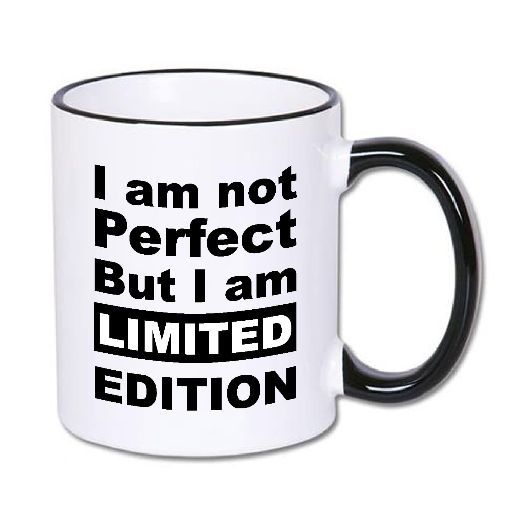 Kubek I AM NOT PERFECT BUT I AM LIMITED EDITION z czarnym uszkiem.
