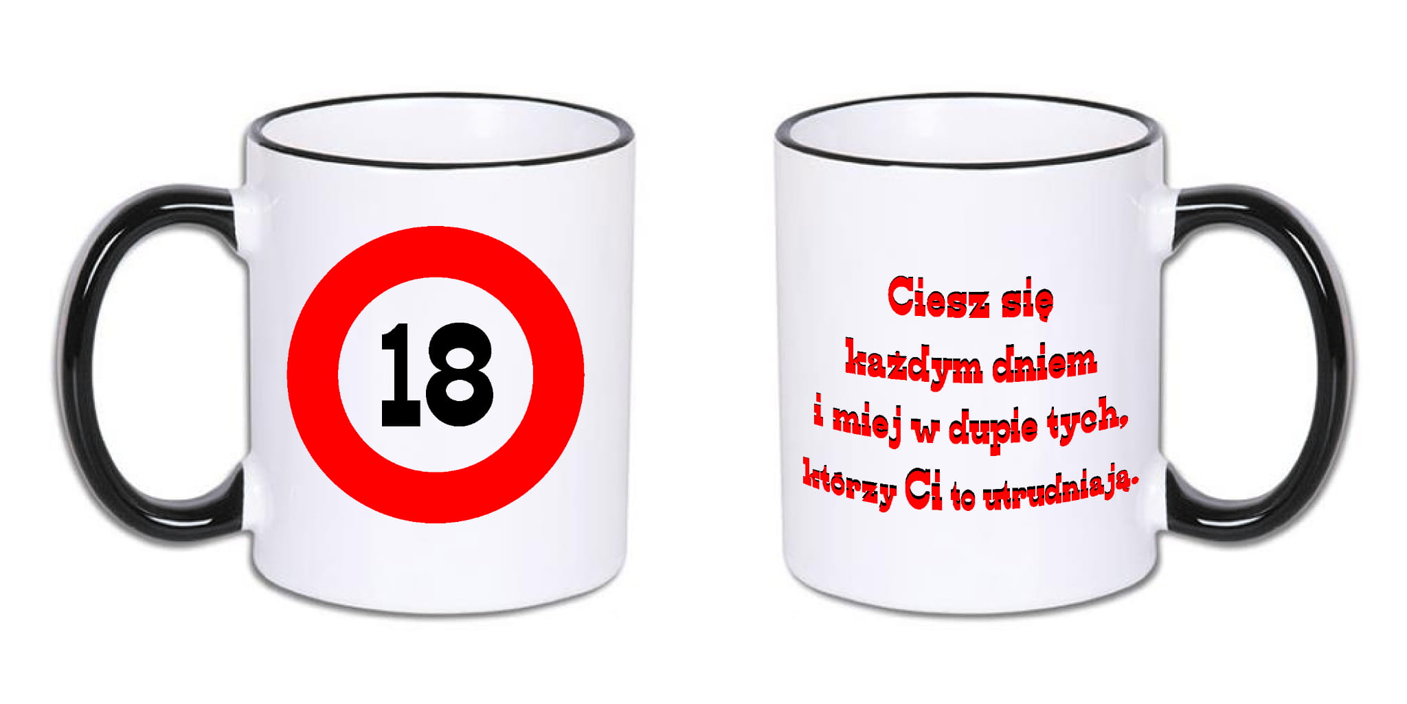 Kubek ceramiczny o pojemności 330 ml z dwustronnym nadrukiem.