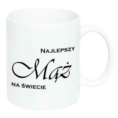 Kubek – NAJLEPSZY MĄŻ NA ŚWIECIE biały o pojemności 330 ml z dwustronnym nadrukiem.