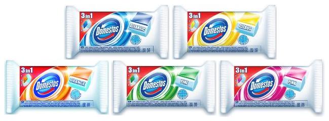 DOMESTOS WC 3w1 kostka toaletowa zabija bakterie, czyści toaletę oraz odświeża pozostawiając świeży zapach.