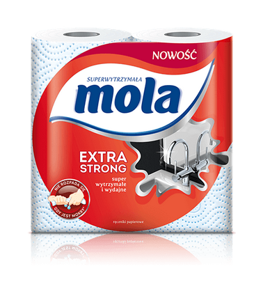 Ręczniki papierowe Mola Extra Strong są bardziej wytrzymałe niż inne ręczniki wiodących marek, dzięki czemu skuteczniej usuwają najtrudniejsze plamy i zabrudzenia.