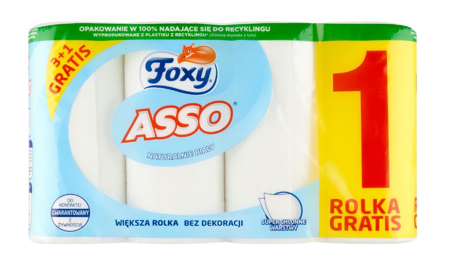 Foxy Asso to ręcznik kuchenny odpowiedni do kontaktu z żywnością, można używać w kuchence mikrofalowej do podgrzewania lub rozmrażania żywności. Używaj go do wycierania rąk aby wyeliminować ryzyko rozprzestrzeniania się bakterii. Ręczniki Foxy Asso zapewniają wysoką chłonność i wytrzymałość, produkowane bez użycia wybielaczy optycznych.