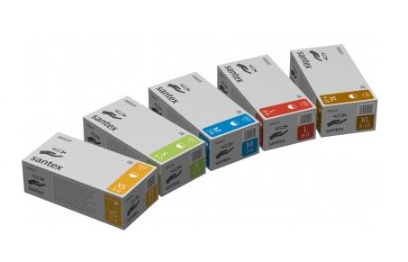 Pudrowane rękawice lateksowe, niejałowe, diagnostyczne i ochronne, do jednorazowego użycia, opakowanie 100 sztuk. Dostepne w rpzmiarach S (6-7) M (7-8) L (8-9) XL (9-10)