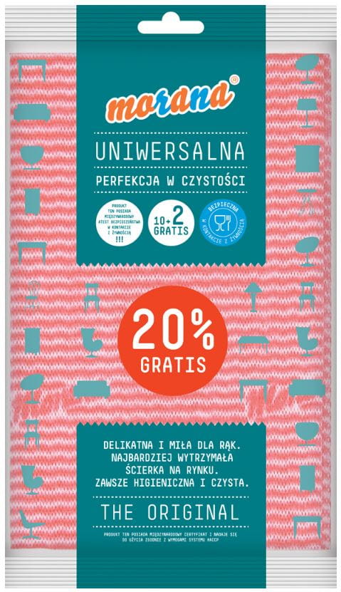 Ścierka MORANA uniwersalna to jedna z najbardziej wytrzymałych ścierek na rynku. Bezpieczna w kontakcie z żywnością, bezwzględna dla brudu, delikatna i miła dla rąk. Bezpieczna w kontakcie z żywnością do wielokrotnego użytku, prać w temperaturze 60°C. Spełnia wymogi systemu pracy HACCP.